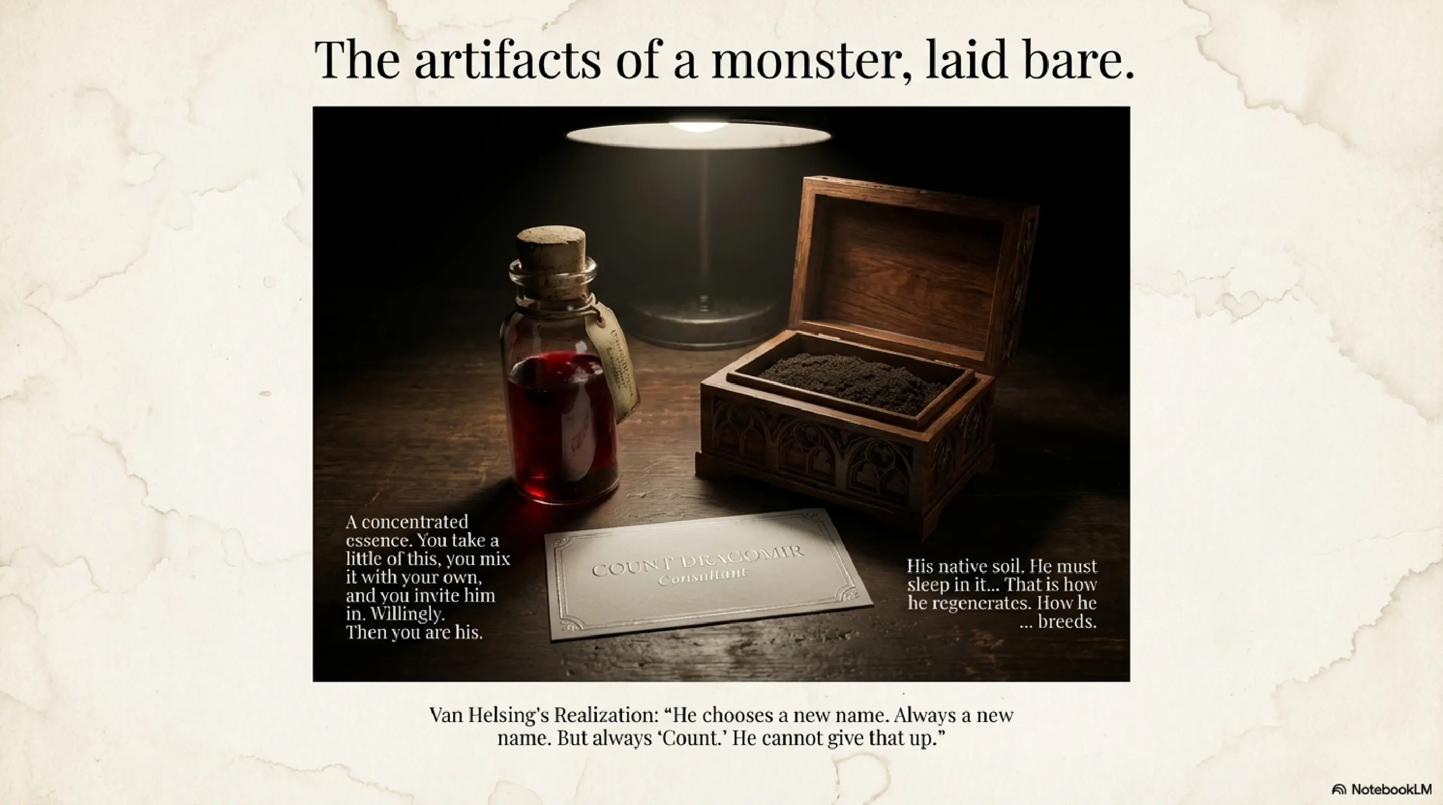 “His native soil,” Van Helsing murmured. “He must sleep in it, some part of him. That is how he regenerates. How he… breeds.” The old man’s eyes glittered. “He has placed it here. A hidden coffin, in the city’s heart. And he leaves it where we can find it. Why?”