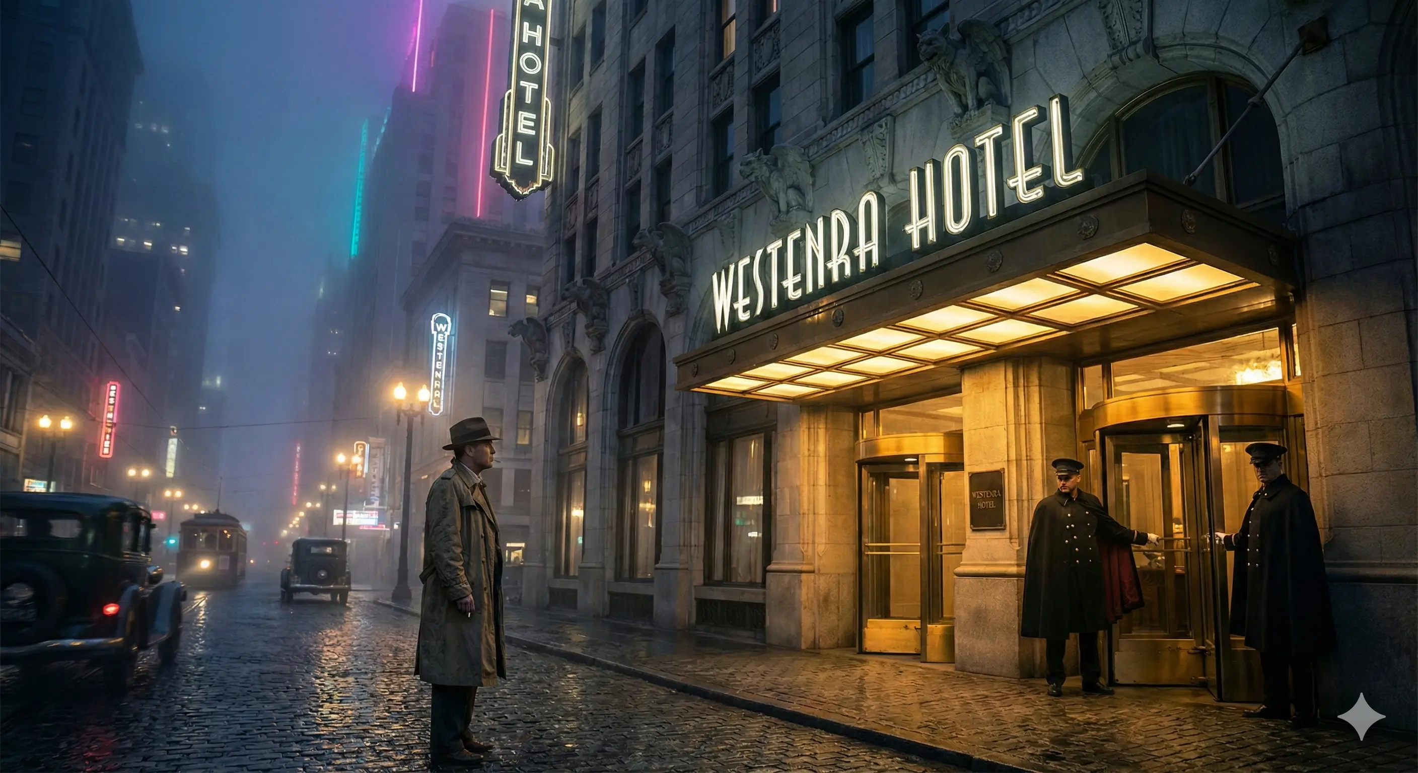 The Westenra Hotel sat on the good side of town and looked down its marble nose at the rest of us. Crystal chandeliers, floors you could eat off if you could afford the tip, and bellboys who wore more brass than a Sunday-band cornet.