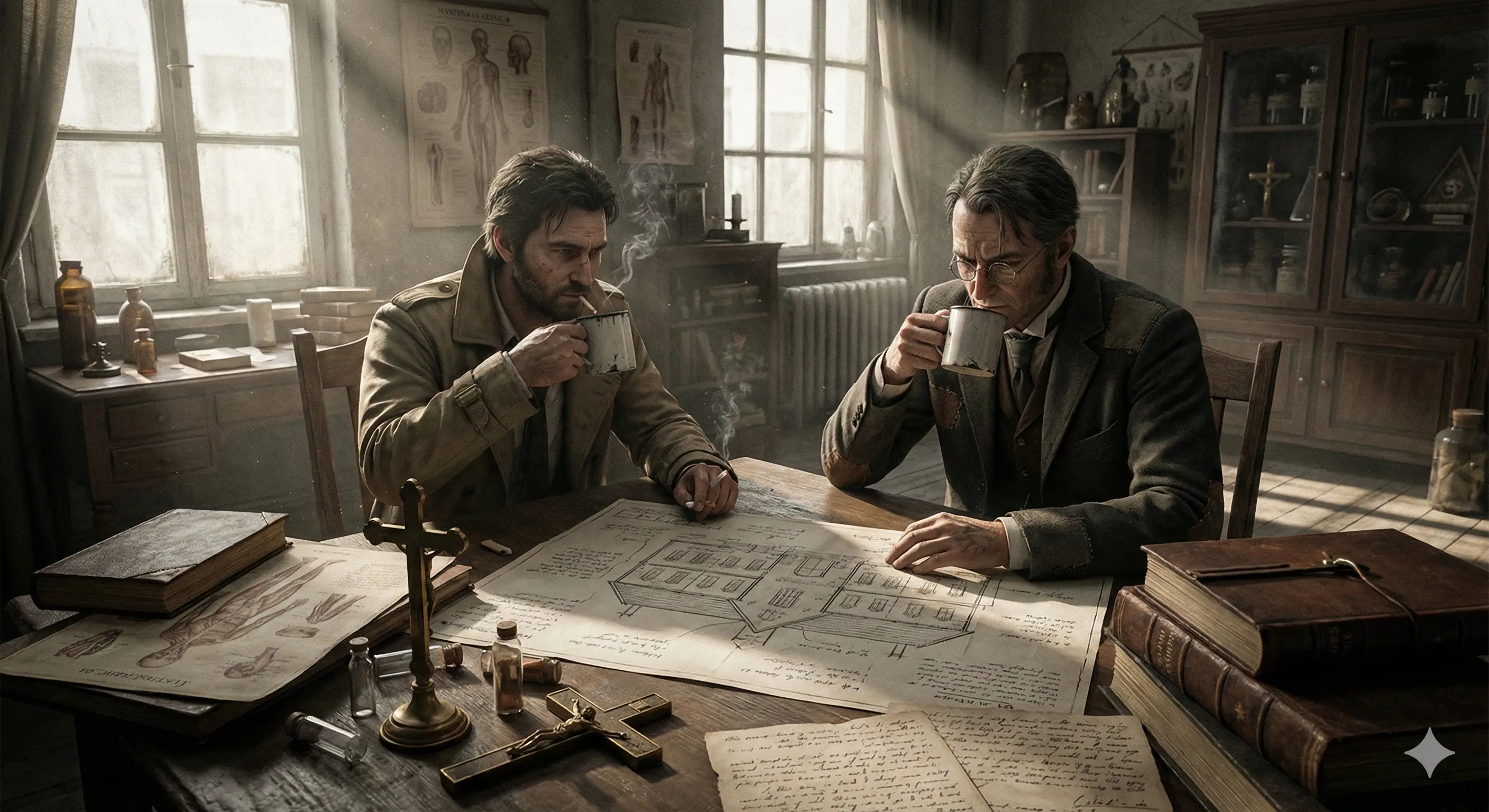 Van Helsing was tall and slope-shouldered, in a suit that had been mended more times than a broken promise. His beard was trimmed neatly, but he’d missed a spot under his chin, the way men do when they’re thinking about anything but their own faces.
