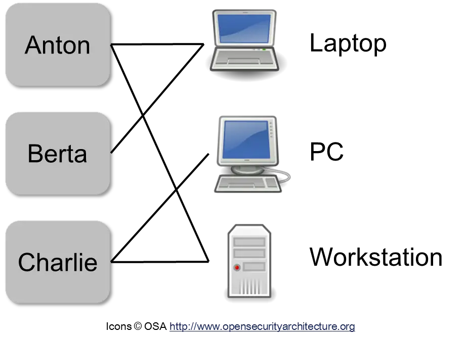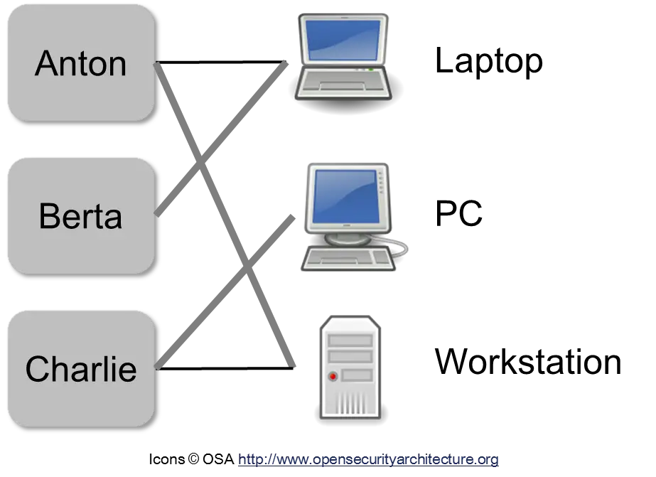Anton takes the workstation, Berta the laptop, and Charlie the PC.